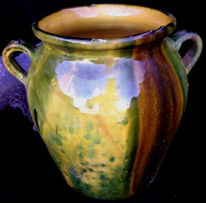 Another made to order all green Pot a Confit with beautiful yellow drips, cream drips and green spots. Top condition sitting at 10 inches. Castelnaudary 1800-1820. From a top collection.