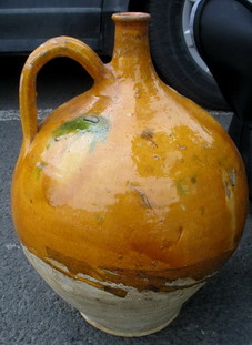 The most beautiful and raarest of the classic Plongeon form of the Tarn found in many years. These are without doubt, the hardest pieces to find in the last few years. Probably as they are up there with the 'Top 5' rare forms of Terres Vernissees especially when they have unusual features such as this stunning for here,. The size is 'one-of-a-kind' 20 inche and the Plongeon is very old, 1800s. The glaze is beyong stunning with a bright mustard including a small green tache that just adds the perfect 'period'. If this is a piece for your collection....Voila!