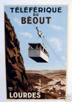 This poster was a part of the J&V collection for many years as it was found at the 'Puces' in Paris During the 90's. It has been backed,linen-pressed and acid-washed All the above alone cost $400. This poster is from the late20's-early 30's and advertises the new tram that takes you over the village of 'Lourdes' and up to the summit of the nearby mountain. Lourdes was one of the top destinations for French tourists who wished to visit the site of the 'Miracle of Lourdes' and also take the 'Waters at the Spa'. d The poster is in amazing condition and the colors are vivid along with the subject matter. This is a serious poster at a price 1/2 of what it would sell for at any fine shop in the US WITHOUT the acid-wash and backing! A wonderful piece of Art Populaire de l'affiche (Poster)Approximate sizes are 28 x 18 inches. Photos on Demand. The exact affiche (not backed and acid-washed) just sold on a French Site for 260e ($396)