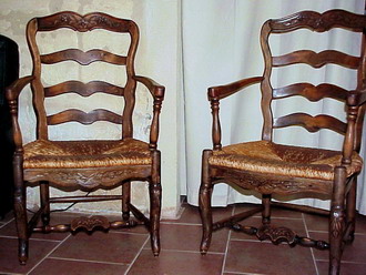 A pair of two stunning 'Bonhommes Sieges' in Walnut in regional Provencal style. Perfect condition and very rare! The amount of carved detail is priceless. Please write for more information or photos.